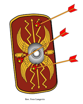 [5] The Greek verb translated “taking…” (analabontes) is an aorist active participle, meaning the Christian is taking the shield of faith as needed and the last Greek verb translated “take…” (dexasthe) is an aorist middle imperative which is used of the last two pieces of armor and means for oneself to take them up as needed.