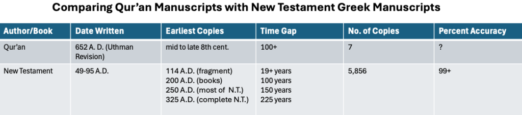 How then can we believe that the Qur’an is reliable? Do these same types of problems exist with the Bible? Let’s turn our attention to…