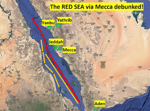 In addition, when Dr. Crone went to the Red Sea trade routes, she found that it was all along the East African coast, but not on the Arabian coast (see above map), proving none of the trade went through Mecca at all, confronting the notion that it was the center of trade.